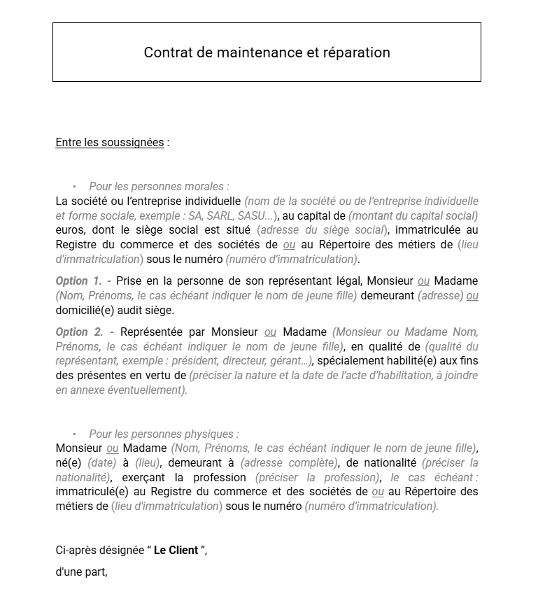 Notre modèle de contrat de maintenance est téléchargeable au format word.